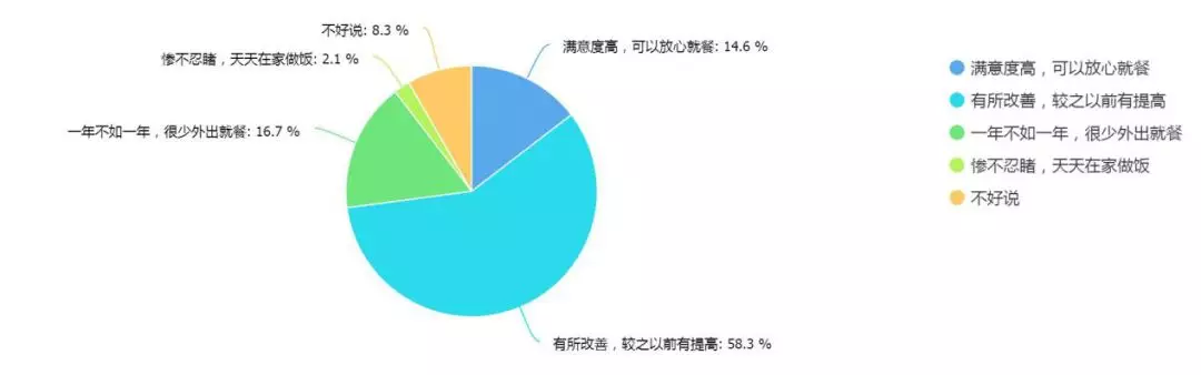 对于深圳白领非常关心的餐饮店面,接近6成受访者认为比之前有所改善,14.6%受访者认为可以放心就餐