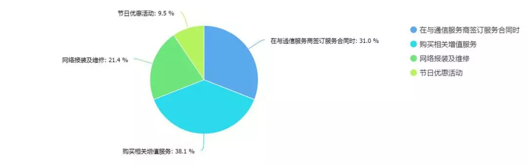 同时在消费者反映的问题中,这些问题普遍发生在签订服务合同以及购买增值服务两个阶段。而购买相关增值服务时产生问题的消费者高达38.1%。