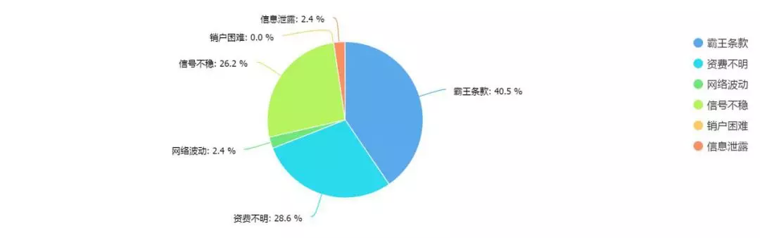 在网民反映的问题中,霸王条款、资费不明、信号不稳等问题占据较高比例,其中霸王条款的认同率高达40.5%。值得思考的是在各大运营商推广5G的同时却还会存在信号不稳定的问题,信号不稳定是否会影响到5G今后的平稳发展。