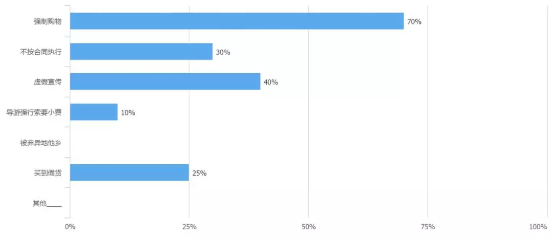 在众多的旅游体验当中,消费者遇到的最主要的问题是强制购物、遭遇虚假宣传、临时更改旅游线路等问题,同时消费者在选择旅游线路时,“野马旅行社”、导游的服务态度、安全等问题也在重点考虑范围内。在改进旅行社服务质量方面,80%的消费者认为现状需要政府和网络共同关注,才能营造良好的旅游环境。旅行社对于投诉案例的反应机制和反应速度,之后也将成为消费者在选择旅行线路时的重要考量标准之一。