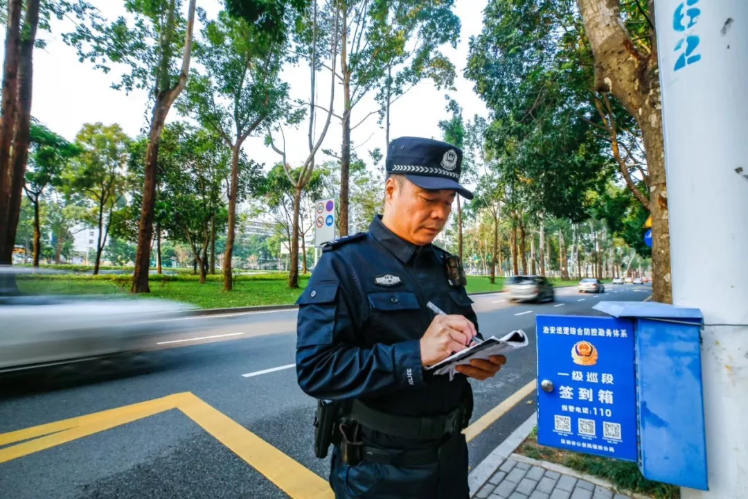 3月7日早晨8时,我们在景田派出所门口见到了45岁的巡逻民警卓明浪,一身警服整肃有序,高高大大、孔武有力。彼时,他已和昨晚夜班的同事交接完工作,检查完八大件和手枪、执法记录仪、警务手机等警用装备,投入到正常的勤务工作中。