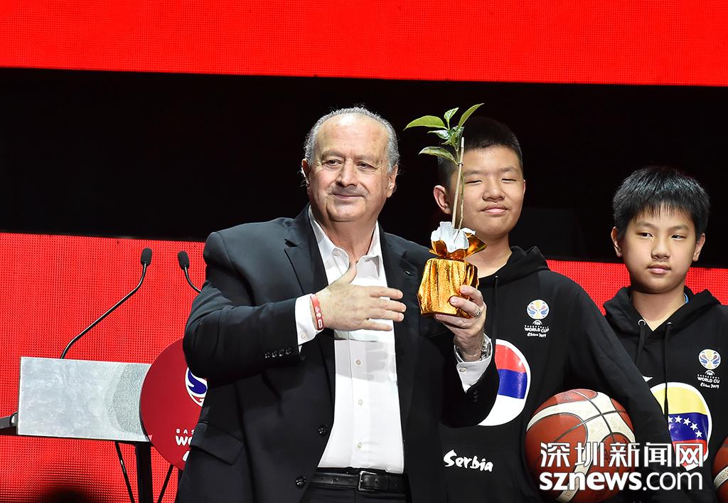 国际篮联主席霍拉西奥·穆拉托雷在活动中被赠予盆栽