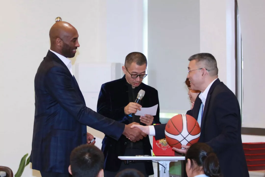 科比对南山区表示感谢,并称赞南山的环境太美,特别点赞了南山的篮球主题灯光秀。