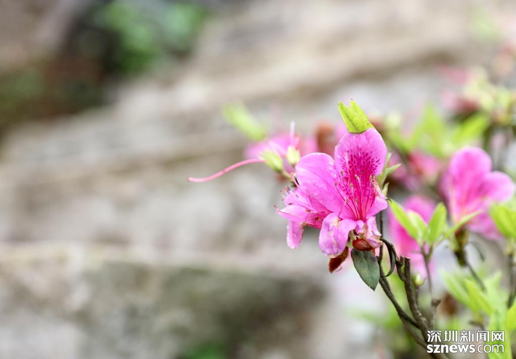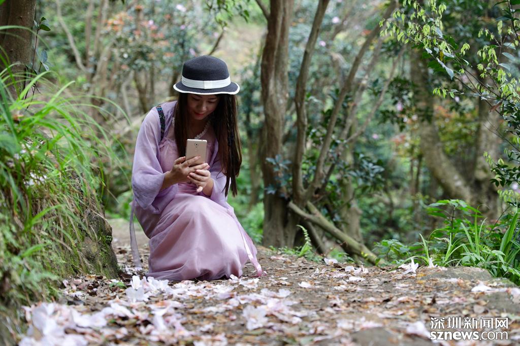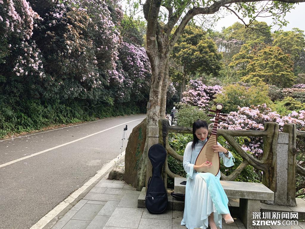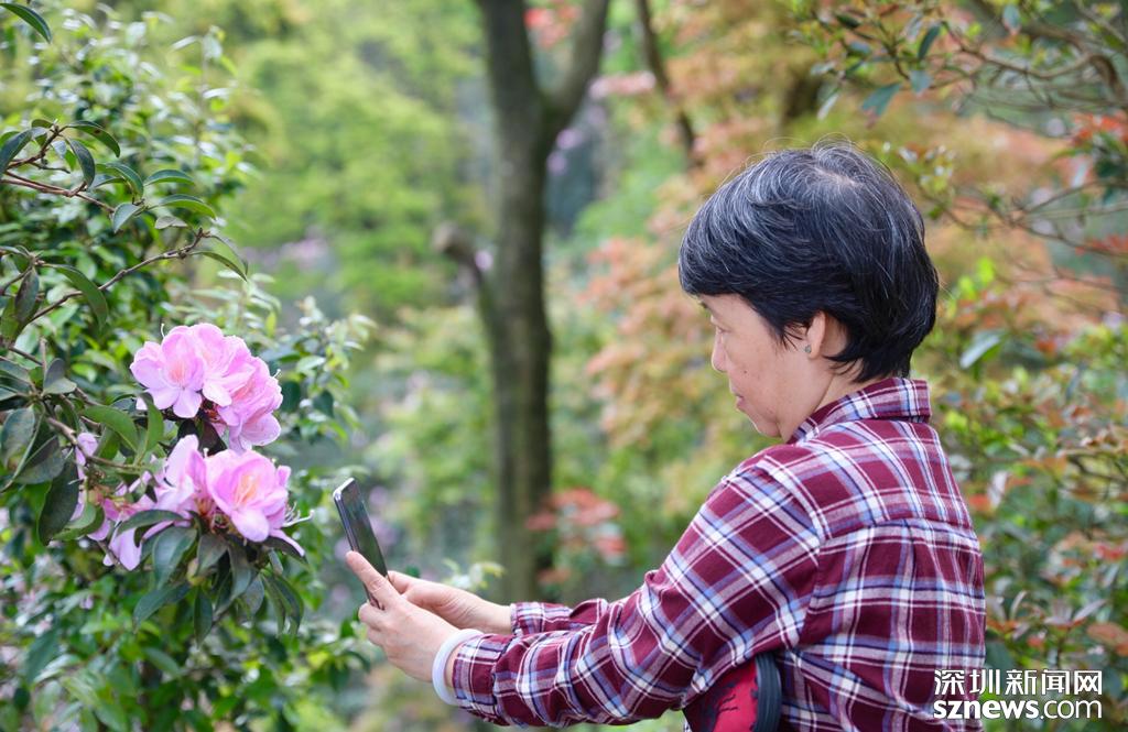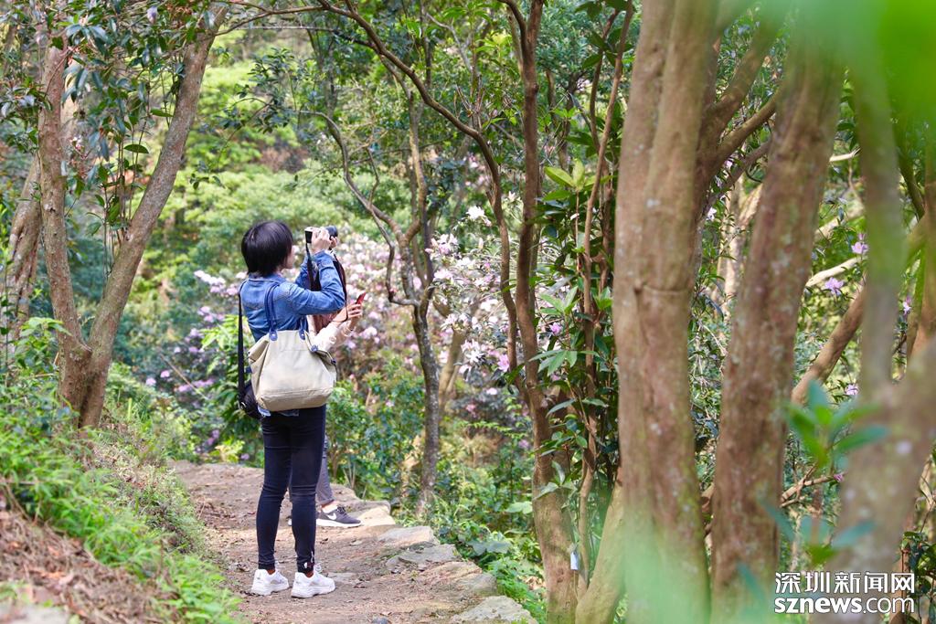 梧桐山成踏春赏花打卡点,市民用相机记录下毛棉杜鹃之美。
