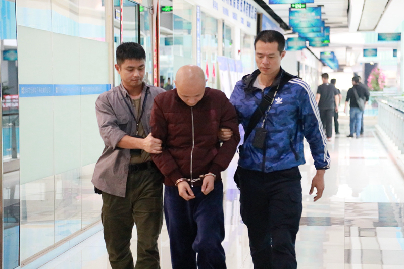 中午12时许,这个犯罪团伙的一号犯罪嫌疑人胡某荣和二号犯罪嫌疑人郭某斌耷拉着脑袋,被几名便衣民警押到了公司。