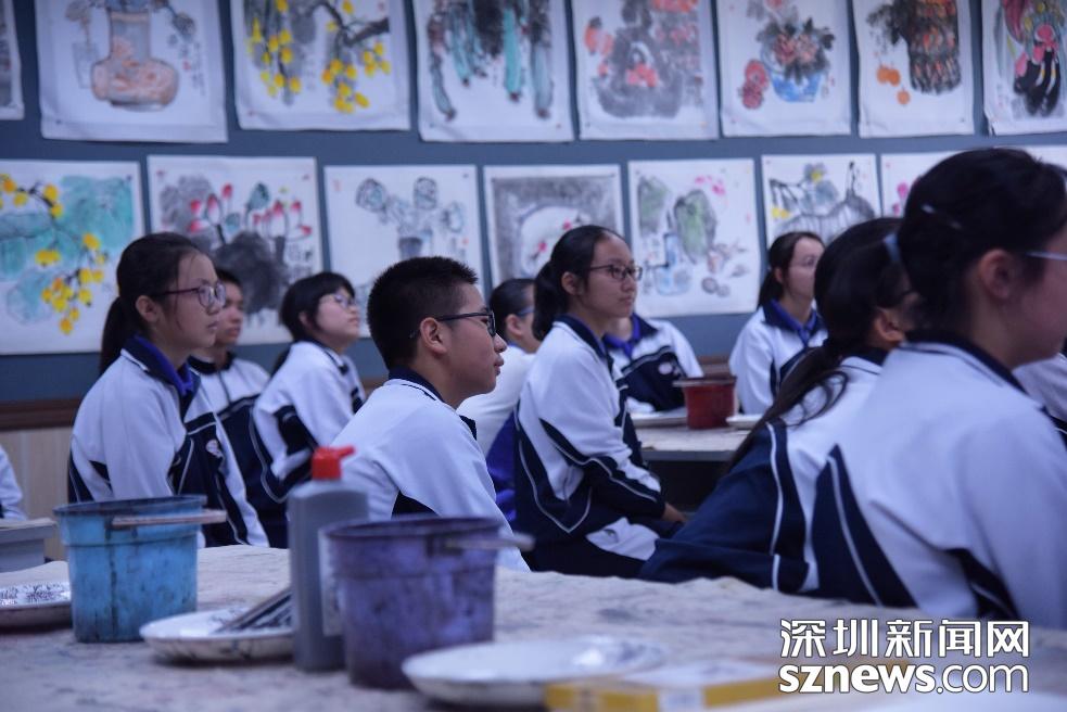 水墨画课上的同学们。 深圳新闻网 曹园芳/摄