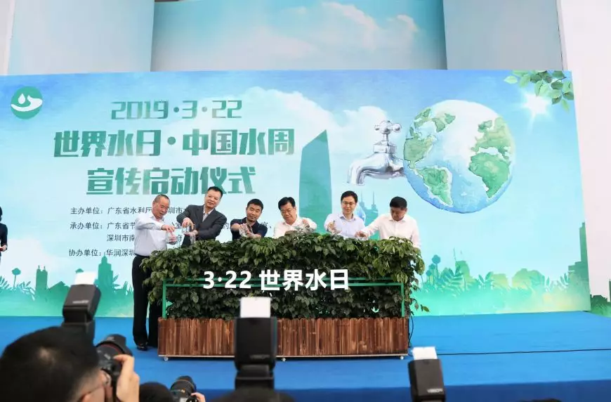 现场领导用取自于深圳湾体育中心大树广场收集回用的雨水,共同浇灌象征着绿色、希望的生命之树,来正式启动“世界水日”“中国水周”宣传活动!