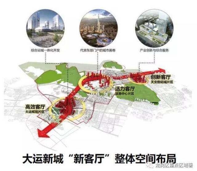 其中,大运新城新客厅包括大运枢纽片区、深港中心片区和天安数码城片区。