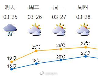 市气象局预计25日仍阴凉有雨,降雨主要出现在25日凌晨至午后,有小雨到中雨,局部大雨,可能有零散雷暴;26日起转多云可见阳光,气温逐日回升,27-28日暖湿有雾,最高气温可回升至25℃以上。