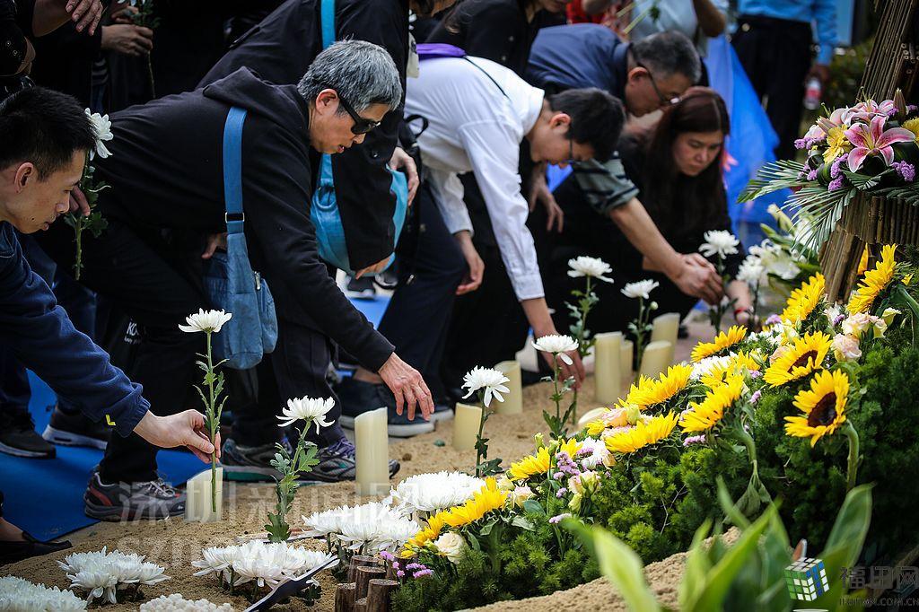 参与海树葬的家属手持献花。近年来,生态殡葬被更多的深圳人所接受。
