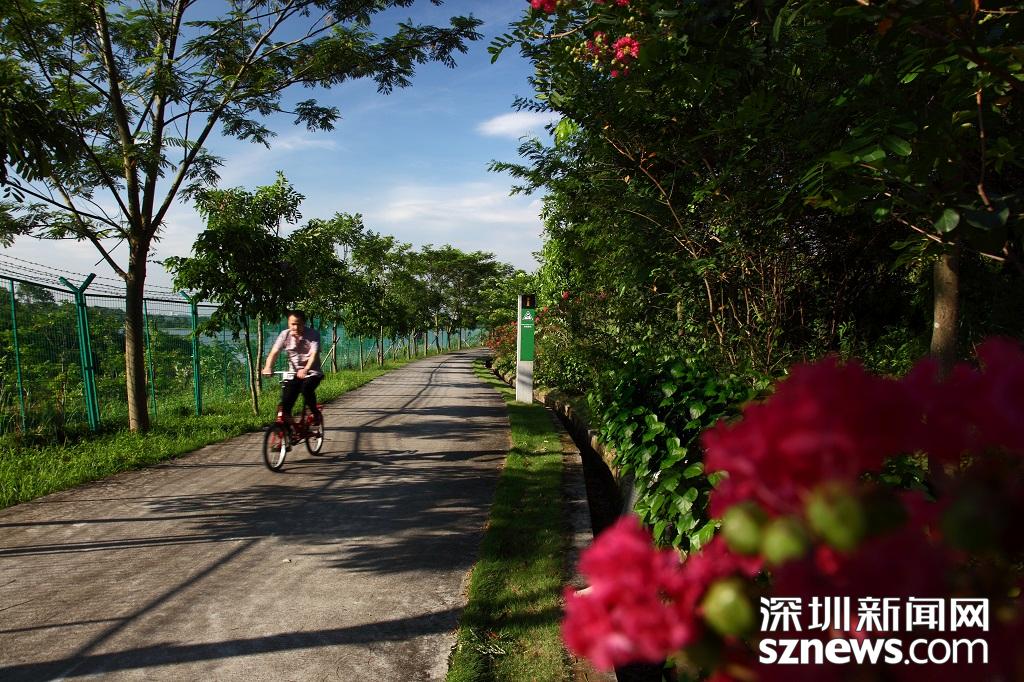 宝安环石岩湖绿道:此段绿道主要利用石岩湖秀美风光,全长约26公里,包含环湖步道、滨水栈道、观景平台等,于2018年底基本完成。环石岩湖绿道建设中,通过雨水种植池、渗透铺装、滤水草带等一系列雨水链设计,在绿道建设中融入海绵城市理念,促进绿道持续发展体系。