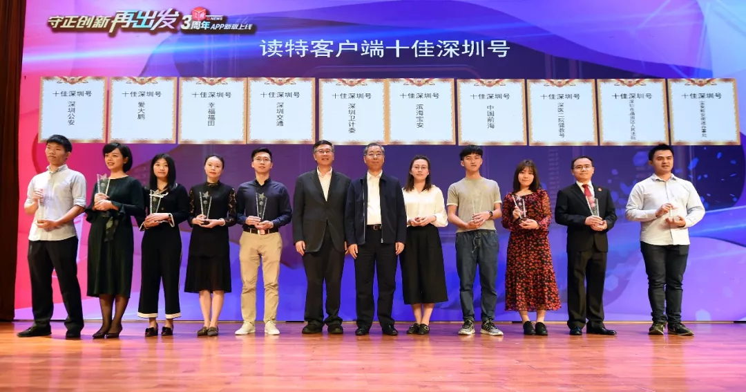 活动现场,根据发稿量、发稿质量、传播力、影响力等综合数据的评比分析,读特客户端评选出10佳入驻深圳号。