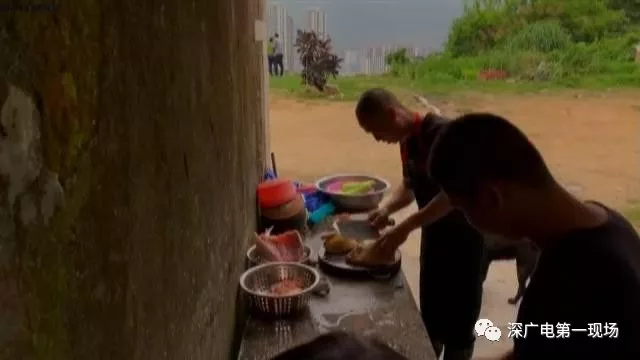 除了污染周边环境,这家农家乐的食品安全也令人担忧:切配肉菜就在露天的环境中,不时有绿头苍蝇落在食材上面;