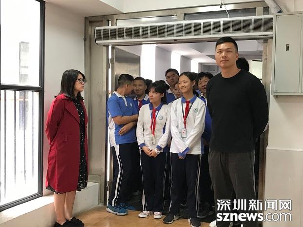 4月1日中午,深圳市福田区外国语学校校长丁长义跟学生一起在食堂就餐