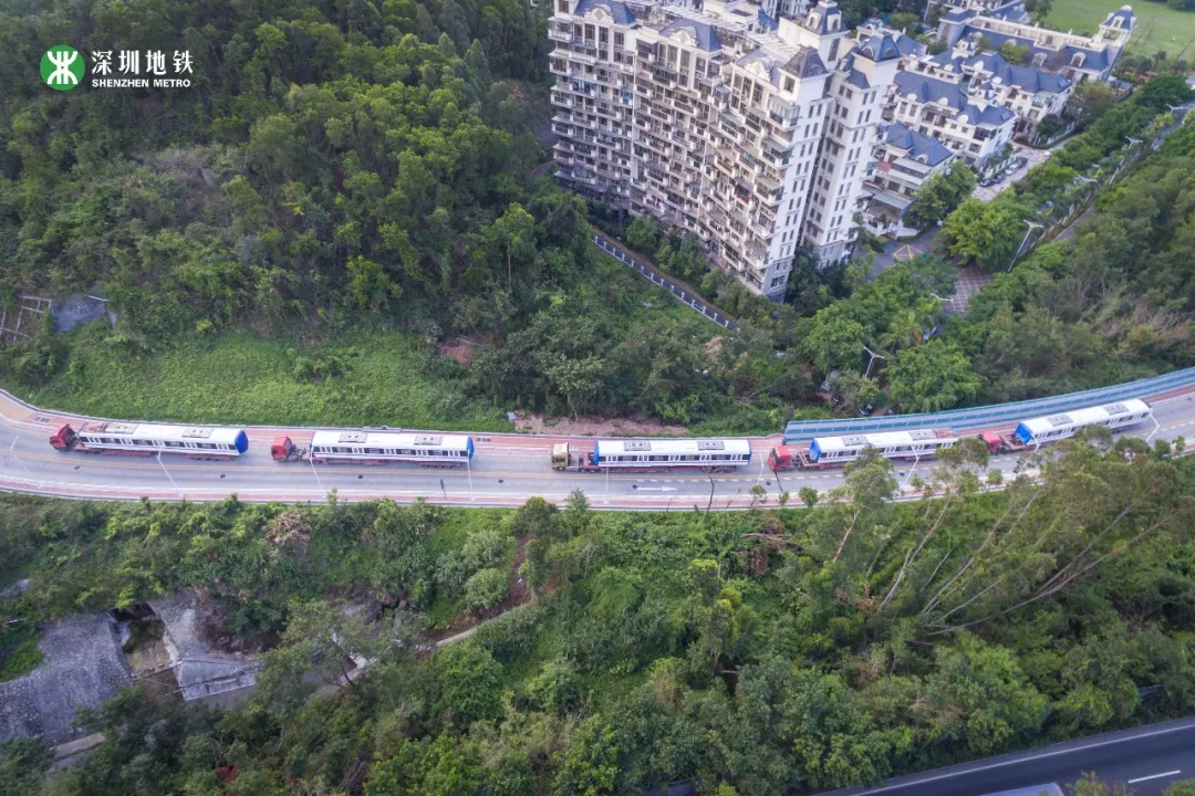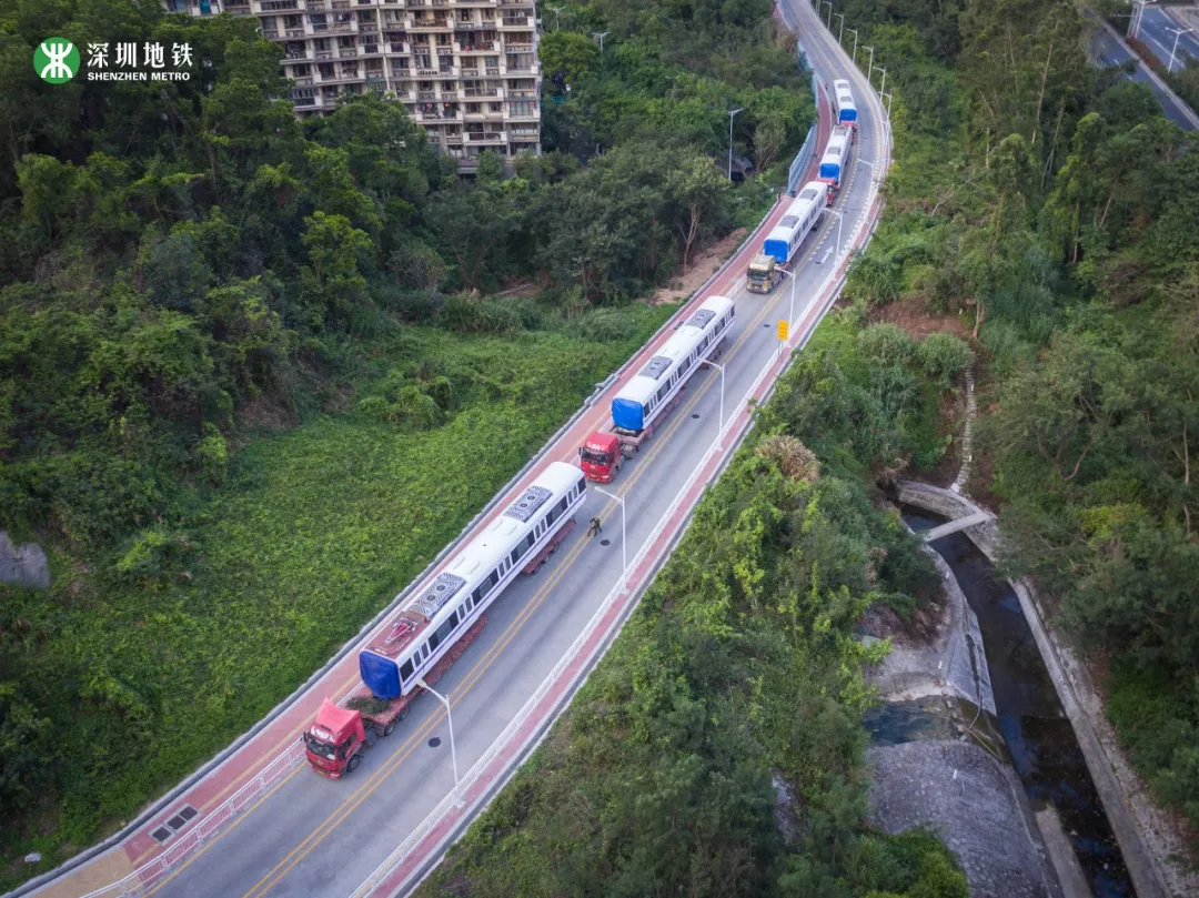 列车“乘坐”平板卡车从中车株机厂起运,经过近1000公里的铁公路运输,最后抵达深圳深云车辆段。
