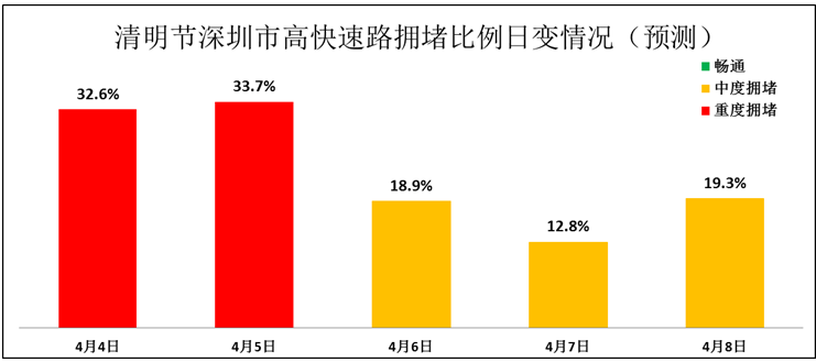 清明假期深圳市高快速路拥堵比例日变情况(预测)