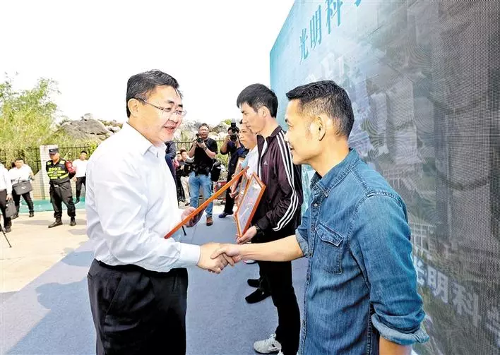 在光明科学城土地整备项目集中清拆现场会上,光明区委书记王宏彬、区长刘胜为10名被搬迁人代表送上感谢信。感谢信上写着: