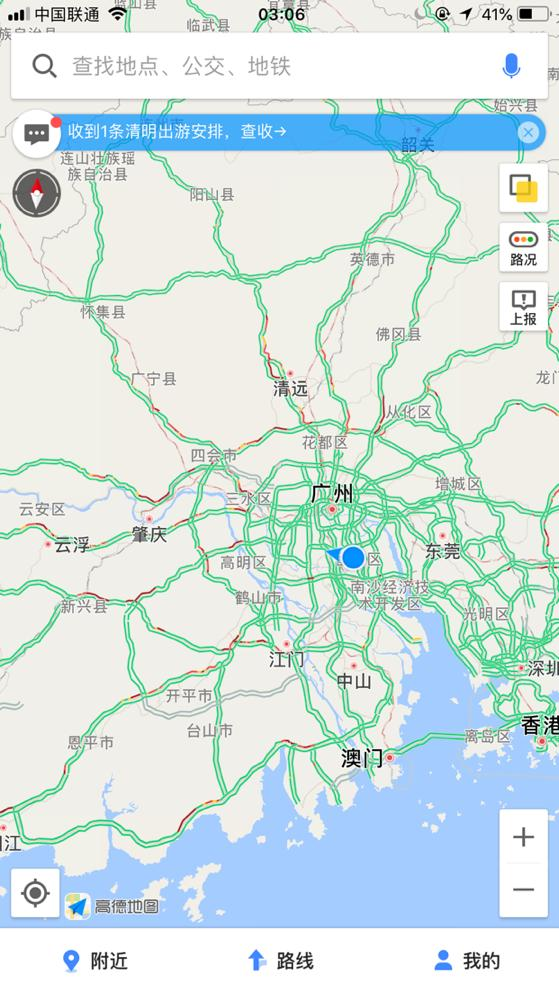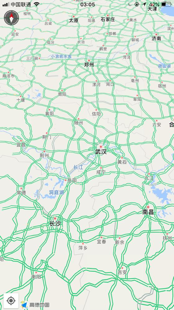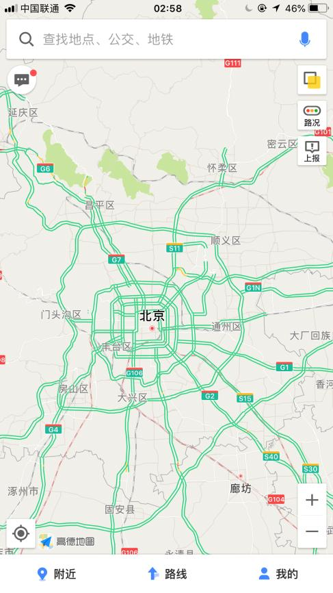 凌晨2点58分,北京周边,高德地图上看,一片绿色,让人觉得特别舒服。