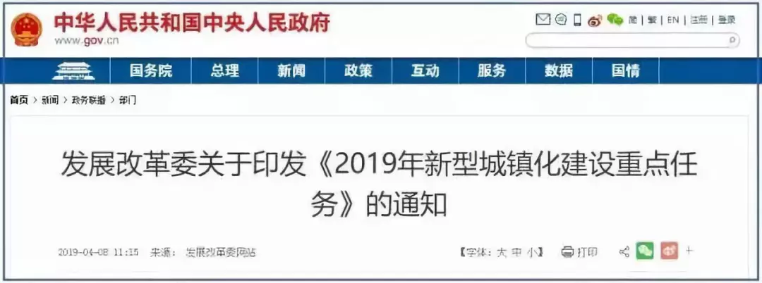 4月8日,国家发展改革委官网发布了《2019年新型城镇化建设重点任务》(以下简称《任务》)的通知。通知指出,要继续加大户籍制度改革力度,在此前城区常住人口100万以下的中小城市和小城镇已陆续取消落户限制的基础上,城区常住人口100万—300万的Ⅱ型大城市要全面取消落户限制;城区常住人口300万—500万的Ⅰ型大城市要全面放开放宽落户条件,并全面取消重点群体落户限制。