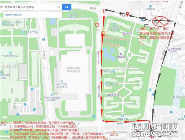最近,受“华为”地铁站施工影响有22条公交线路调整绕行