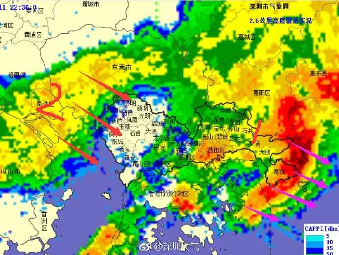 据@深圳天气:【第二轮降雨来了】第一轮强降雨云系已经基本远离,第二轮紧随其后!预计再次开始自西向东影响,虽说是降雨doublekill,但第二轮降雨云系相对较弱。话说各位都是正面刚过“山竹”的人,今晚算得上大场面吗?