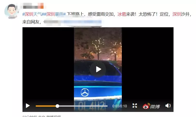 就在不久前,@深圳天气还发布了分区冰雹预警