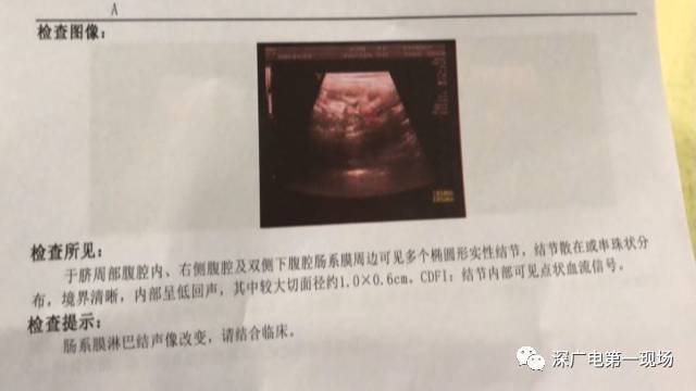 李先生向记者出示了孩子的就诊记录,病历记录上显示幼儿园多位孩子都存在肠系膜淋巴结肿大等诊断。