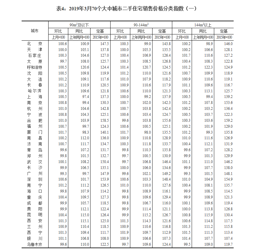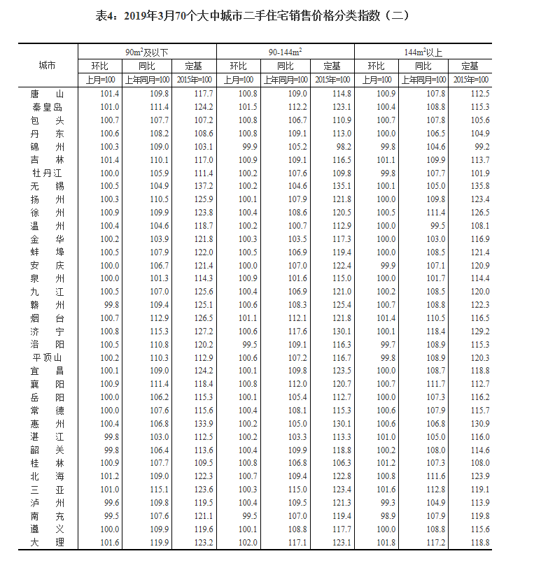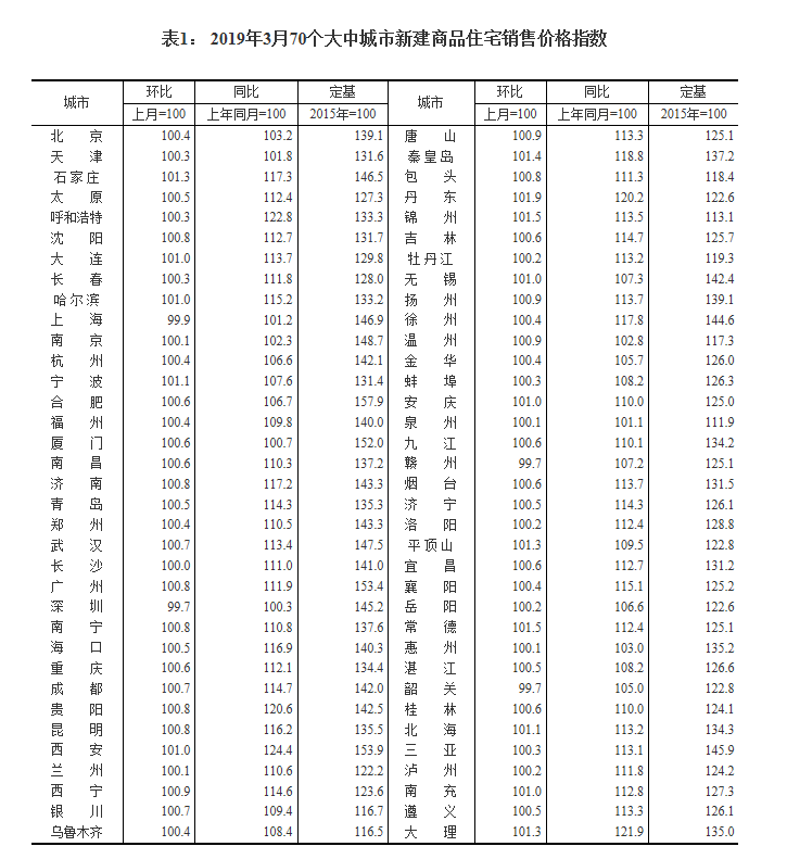 2019年3月份70个大中城市商品住宅销售价格变动情况