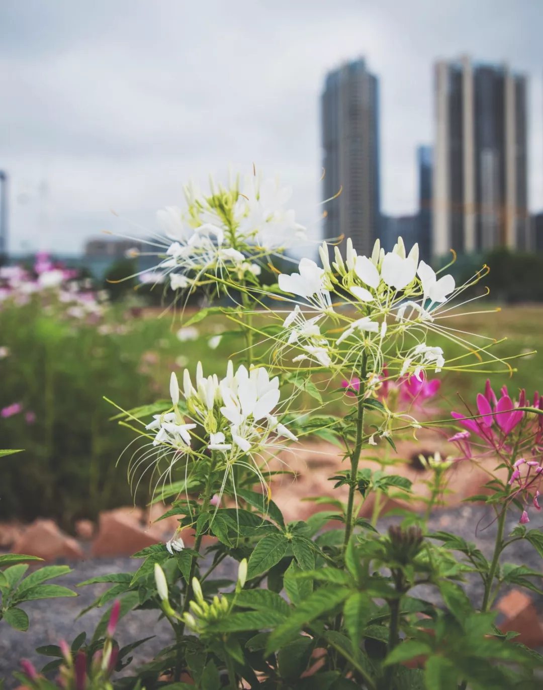 乍一看是不是有点像彼岸花?不过它俩却算不上什么亲戚。醉蝶花盛开时,总状花序形成一个丰满的花球,朵朵小花犹如翩翩起舞的蝴蝶,灵动迷人。