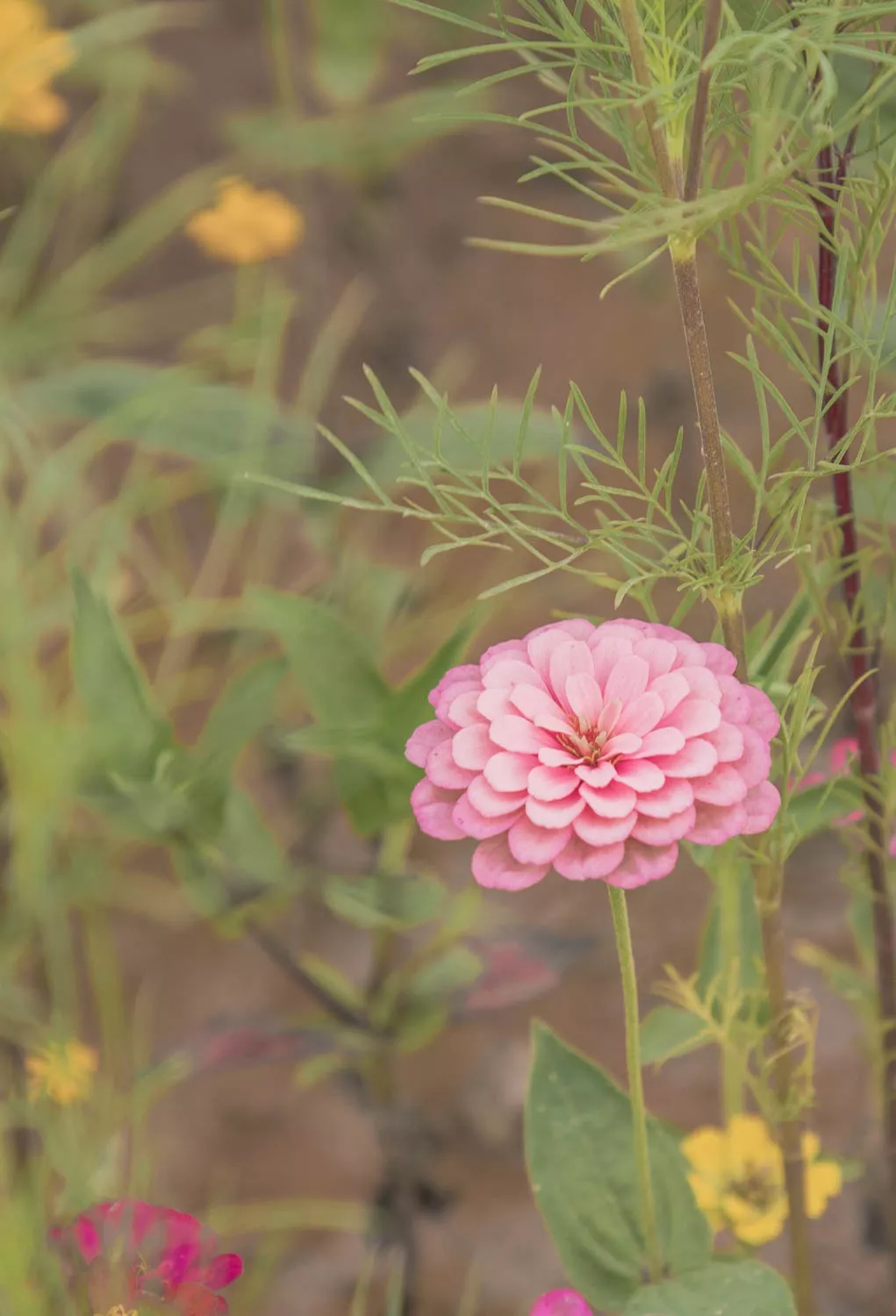 菊类花多种多样,难以辨认,但百日菊却很特别,它的花瓣从花心向外一轮一轮延展,既像水面涟漪,又似树木年轮。