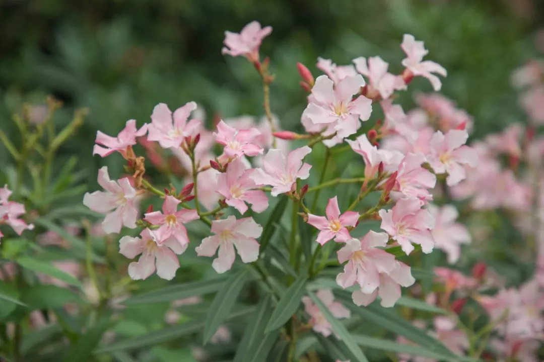 夹竹桃鼎鼎有名,不仅因为季羡林先生的散文,更因为看似娇俏的它,却有着极强的毒性,平时的观赏并无大碍,但如果误食了甚至有可能致命,所以只可远观不可亵玩焉。