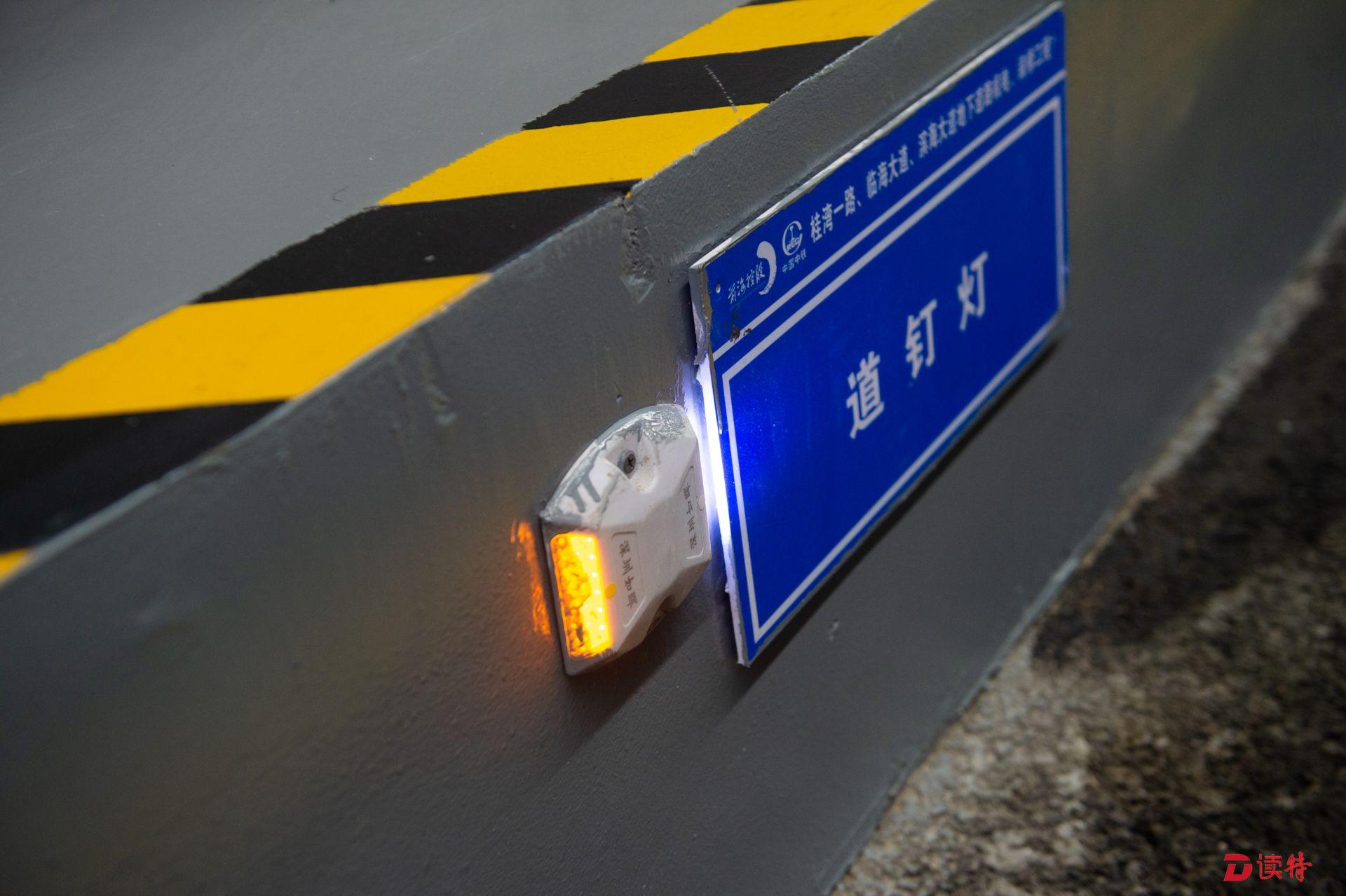 前海地下道路试验段安装有道钉灯,提升行车安全。
