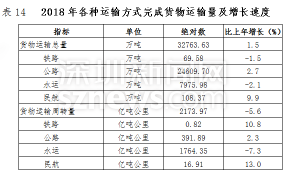 全年货物运输总量32763.63万吨,比上年增长1.5%。货物运输周转量2173.97亿吨公里,下降5.6%。