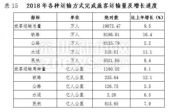 全年旅客运输总量19872.47万人,比上年增长9.5%。旅客运输周转量1180.52亿人公里,增长8.1%。