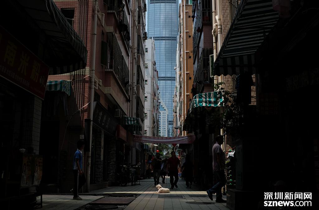 蔡屋围内部,后方为深城投大厦