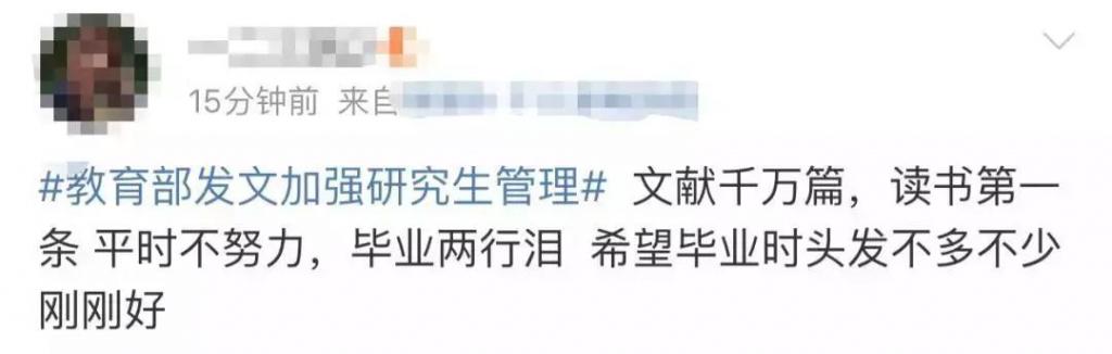此前,教育部印发的《关于进一步规范和加强研究生培养管理的通知》中要求"对不适合继续攻读学位的研究生要落实及早分流,加大分流力度"。