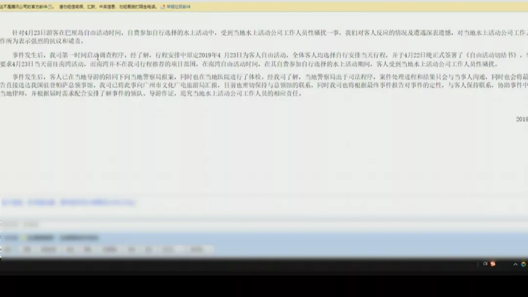 印尼方在26号召开了新闻发布会,确认了杨先生的女儿被侵犯的事实。据了解,嫌疑人今年29岁,是爪哇岛人,目前在等待下一步的审判结果。随后记者联系到了南湖国旅的工作人员,对方表示不方便接受采访,随后发来了一个回应邮件。