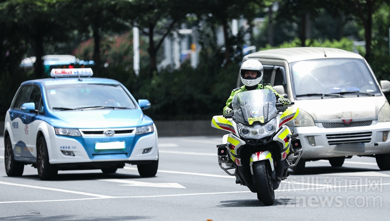 17时,路面执勤的深圳骑警(涂胜 钟鸿冰 摄)