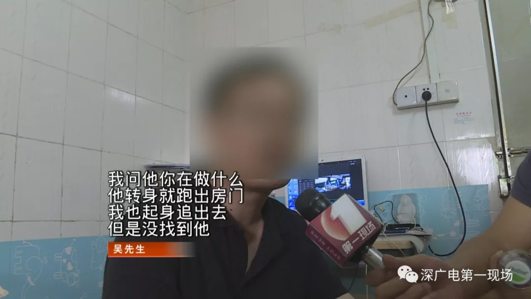 然而,当记者质疑他为何两次进入吴先生房间,同时询问他是否触碰吴先生敏感部位,对方否认了这一说法。目前吴先生已经报警处理,辖区派出所已经介入调查。