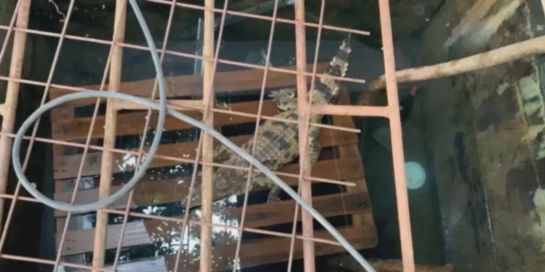 记者来到这个叫做的虎背山的出入口,农家乐便映入眼帘。刚走进去,店员立马迎了上来,招呼记者落座点菜。除了鸡、鸭、鱼等供客人挑选外,还有一条鳄鱼养在池子中。