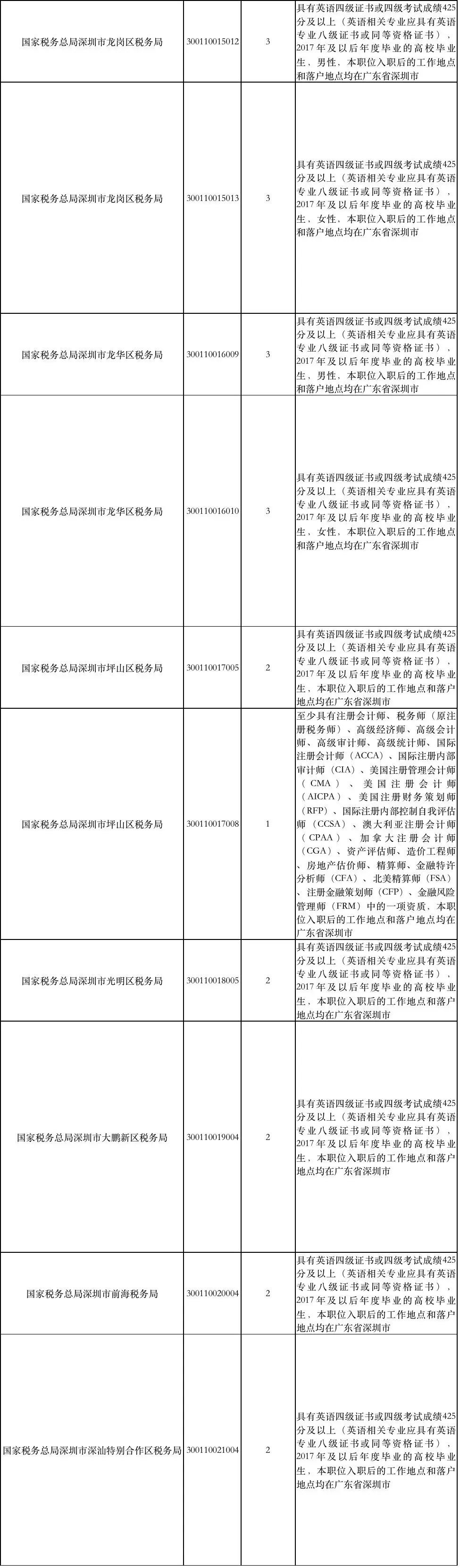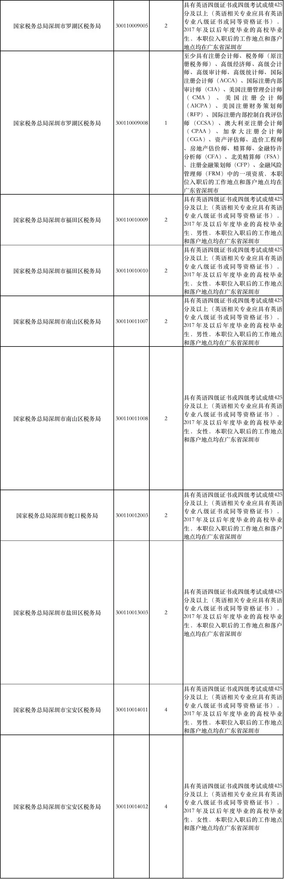 其中,国家税务总局深圳市税务局在8个派出机构、13个区税务局设置36个职位,共调剂补充70人。