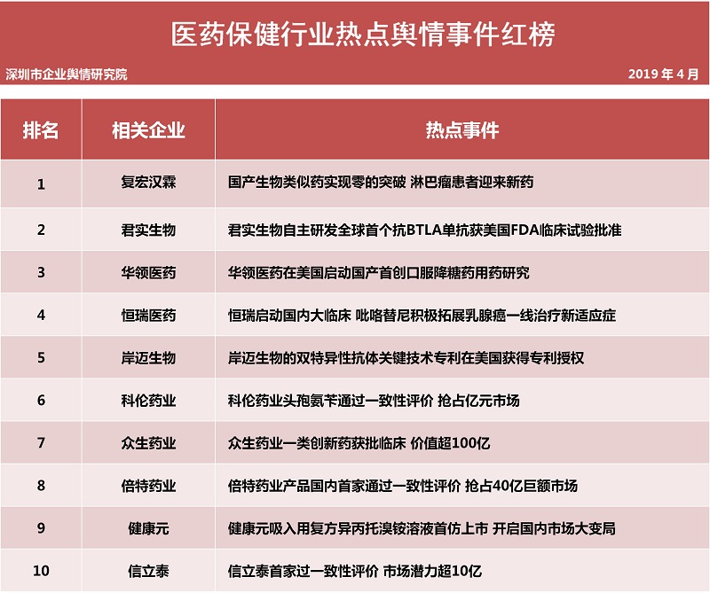 医药保健品行业热点事件排行榜榜单说明: