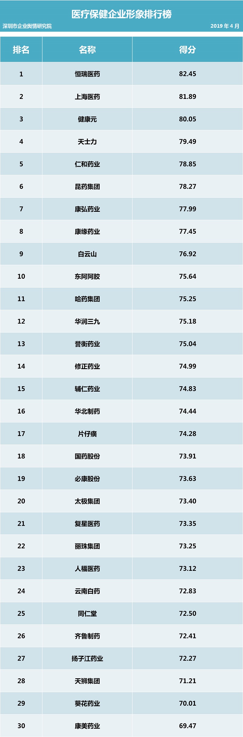 深圳新闻网2019年5月7日讯 (记者田志强 通讯员陈文光)5月7日,深圳企业舆情研究院发布第十四批企业舆情榜单。本次榜单重点聚焦房地产及医药保健两个行业。医药保健行业舆情榜单由医疗保健行业热点舆情事件排行榜(红、黑榜)及医药保健行业企业公众形象排行榜组成。