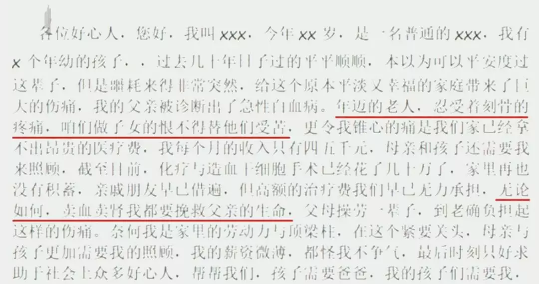 记者随后向该商家提供了部分虚拟信息后,写手便进行了改写,并加上了大量煽情的文字。
