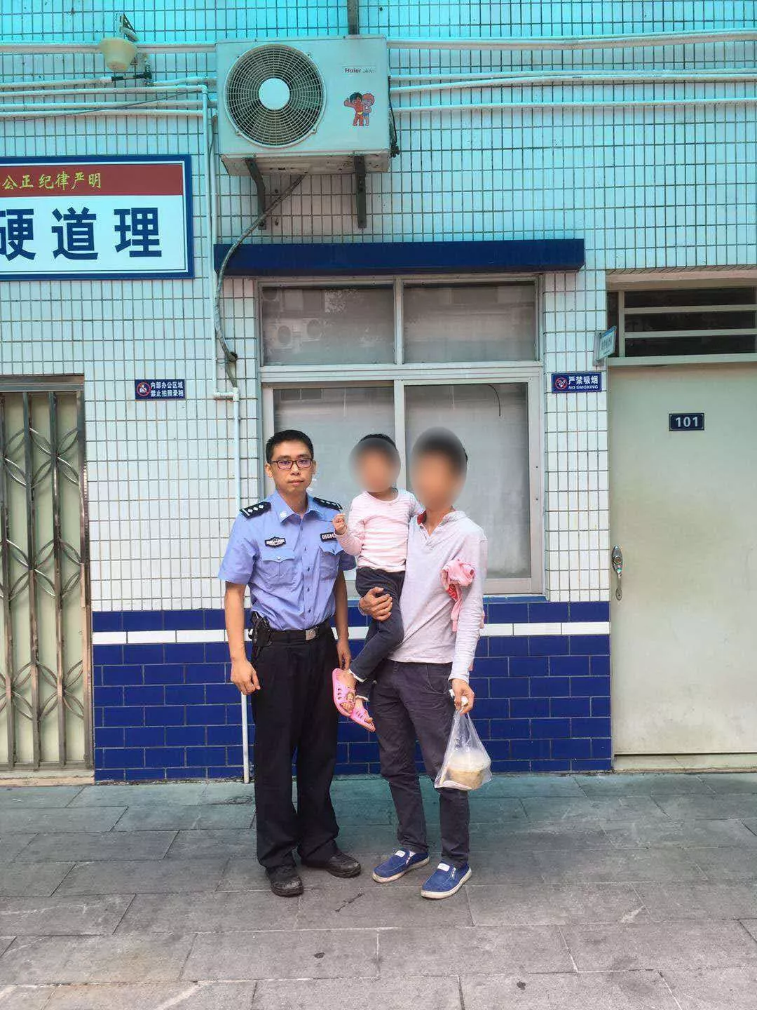 了解情况后,沙头派出所所长肖剑平带队到小孩走失的周边地区进行排查。经过大数据研判、追踪,5月3日15时许,民警在皇岗村地铁站附近的快餐店找到走失小女孩。由于小女孩长时间没进食,民警买了一些食物给她充饥,并将她平安送回家人身边。