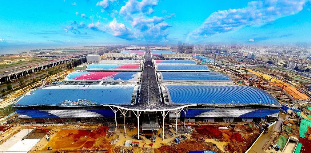 据了解,深圳国际会展中心整个登录大厅区域网壳连同屋面龙骨由12155根构件组成,下部由96根巨型分叉柱支撑,网壳的焊接作业所用的焊丝长度达到2400公里,相当于北京到深圳的距离。