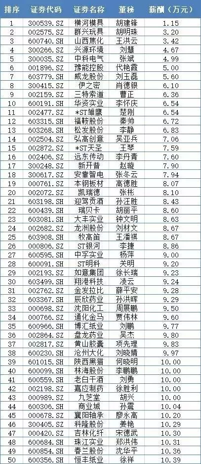 薪酬排行榜倒数前50