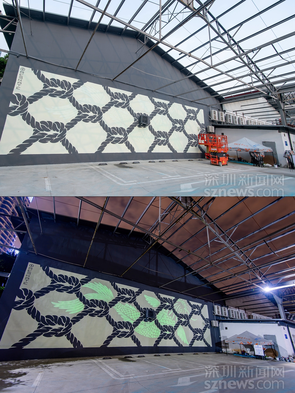 夜光涂鸦作品《连接》日与夜对比图(主办方供图)