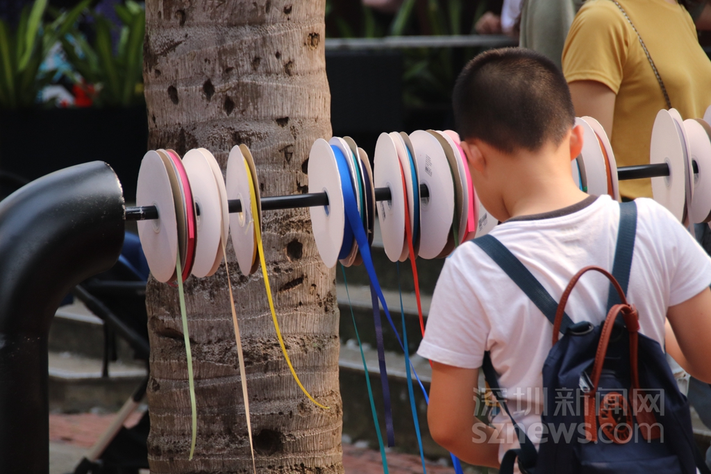 现场提供各种颜色的彩带,供公众选择并缠绕到汽车上