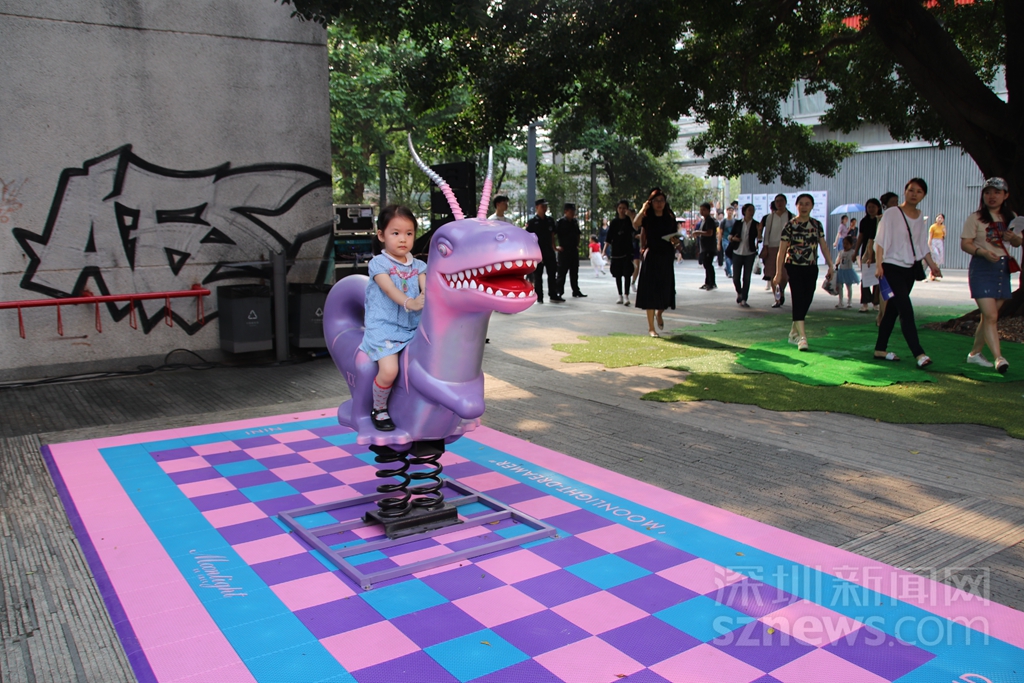 独立插画师罗晓骏擅长塑造他对情感、对梦想的思考,曾于深圳 ONO Infection、OCTCC艺术空间、香港、北京、日本等地多次举办个展和群展。此次作品《梦玩游乐场》希望给园区内的行人带来童话般的浪漫感受。